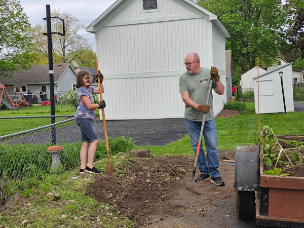 The kids got to work with the grass under the front tree. Maybe they'll have luck getting it to grow.