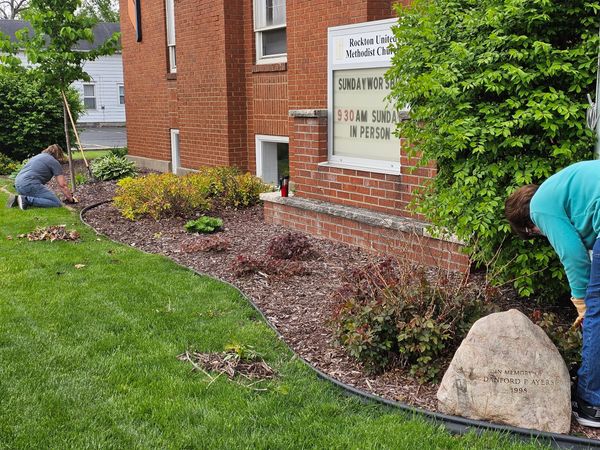 Many weeds to pull and winter debris to clean out of the church flower beds.